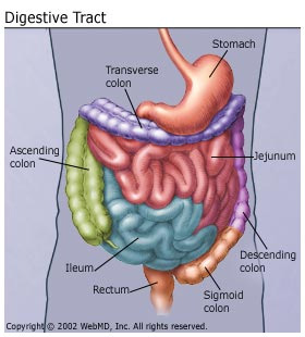 Slightly longer than than the average height of a North American female, the colon measures approximately 6 feet long. Connected to the rectum and small intestine, the colon ensures the reabsorption of water as well as the solidifying and storing of stool. The colon is divided into 4 sections: the ascending colon, the transverse colon, the descending colon, and the sigoid colon.
